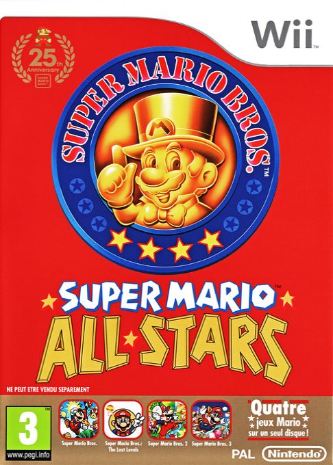 Synopsis : Super Mario All-Stars - Edition 25e Anniversaire sur Wii est une compilation qui regroupe les jeux Super Mario Bros. 1, 2, 3 et The Lost Levels dans une version identique à l'originale sur Super Nintendo. En bonus, les acheteurs ont droit à un CD musical et un livret rétrospectif de l'ensemble de la saga.